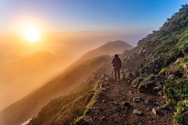 Scenic hilltop viewpoint with misty valleys and beautiful sunrise landscapes.