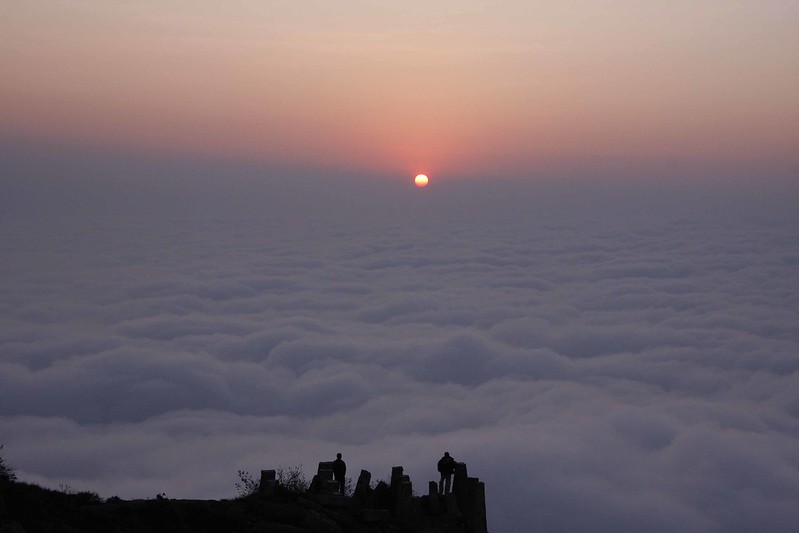 Skandagiri is a popular night trek near Bangalore featuring ancient ruins, sunrise views, and clouds below.